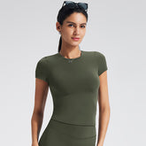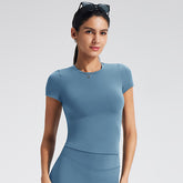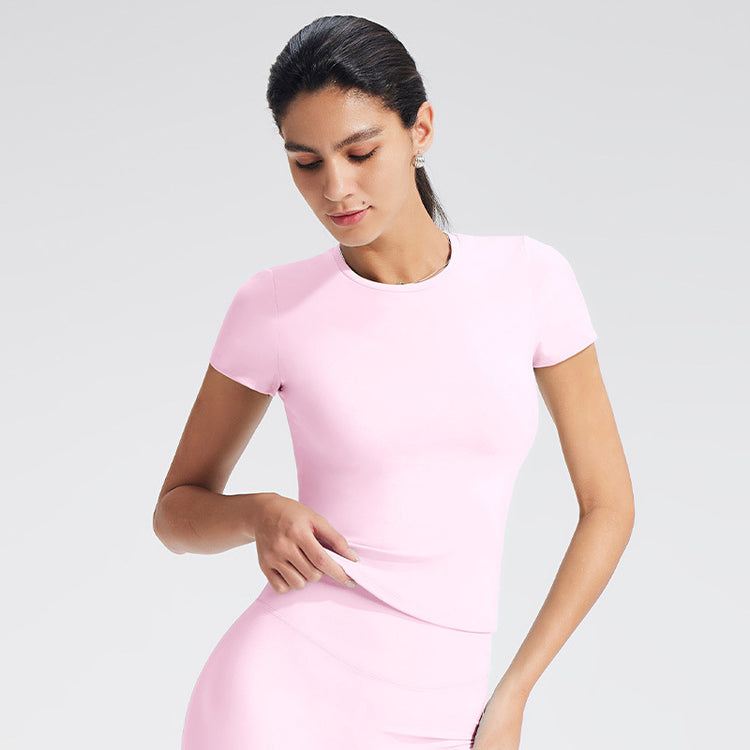 Customized Women's Nude - Feeling Short - Sleeve Round - Neck T - Shirt - Slim - Fit, Body - Contouring and Skinny for Yoga and Fitness - T-XL42