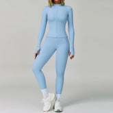 Customized Women's Seamless Yoga Set for Autumn & Winter - Zippered Long-Sleeve Slim-Fit Activewear Set for Running & Fitness