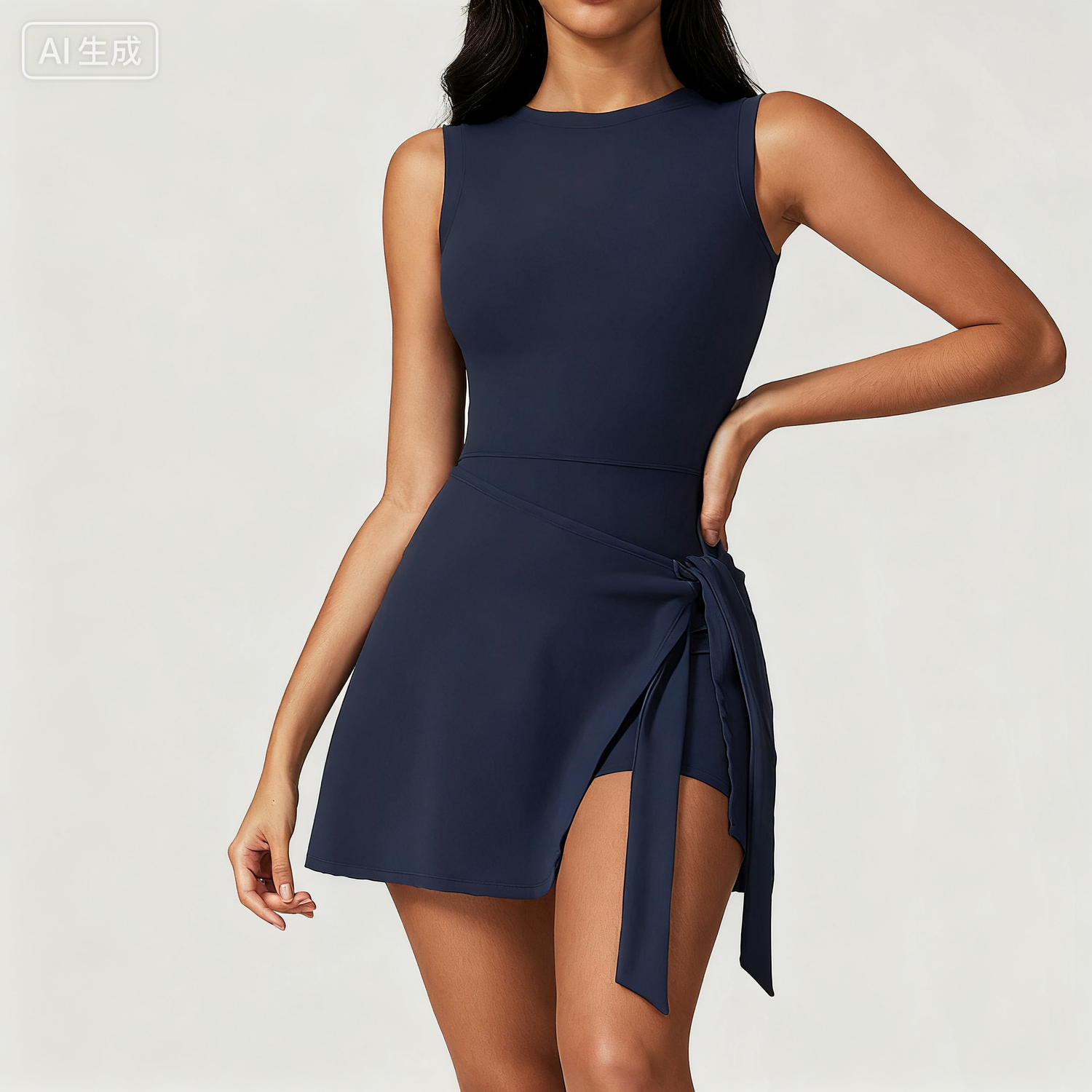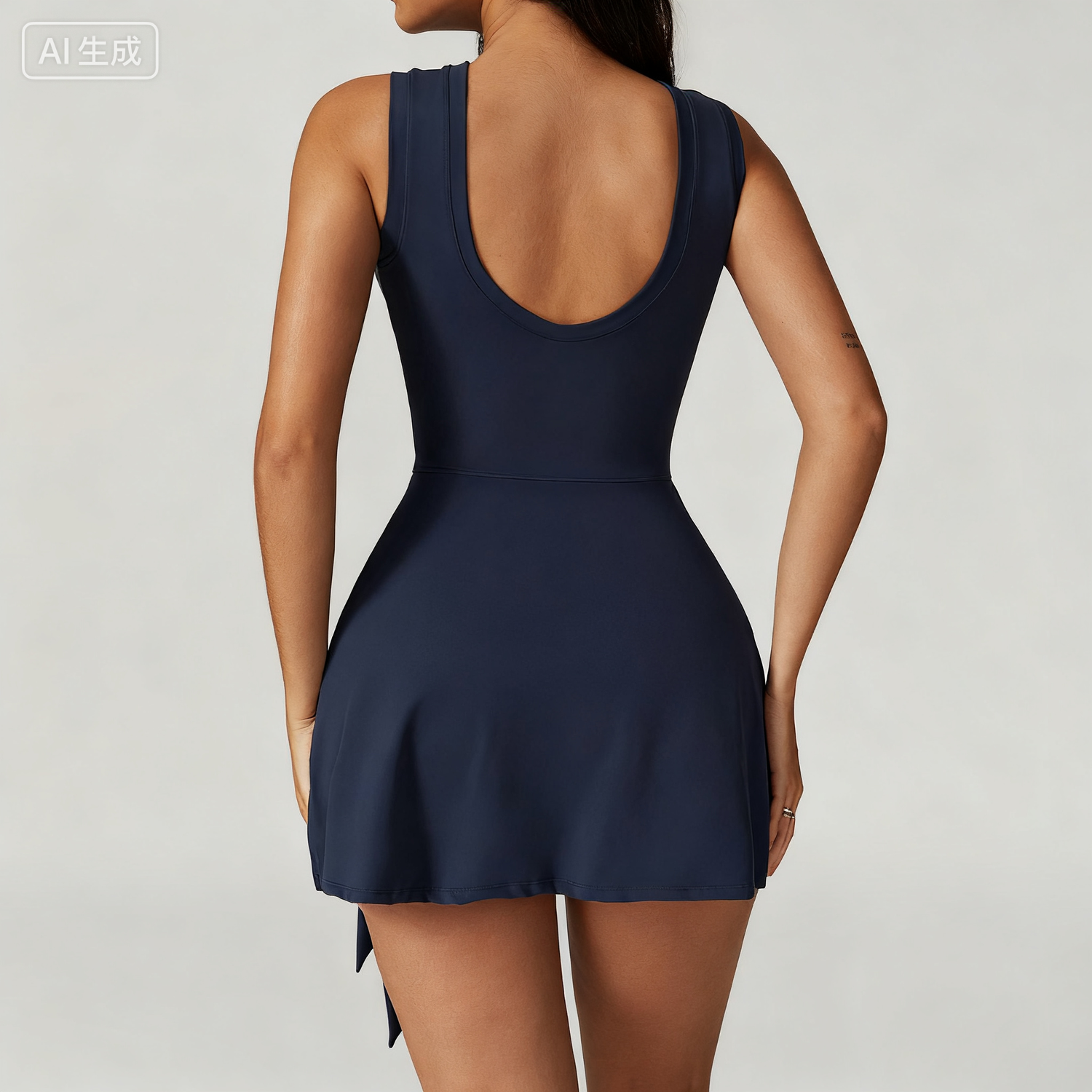 Customized Faux Two-Piece Anti-Slip Tight Sports Dress - Slim-Fit Strappy Casual Fitness Dress with Backless Design for Yoga & Tennis