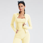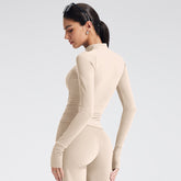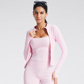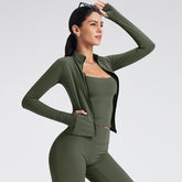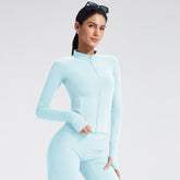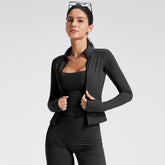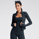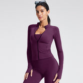 Customized Women's High-Neck Long-Sleeve Zipper Yoga Jacket - Stretchy Slim-Fit Outerwear for Workout, Fitness & Cycling -B-XL37