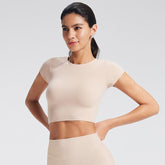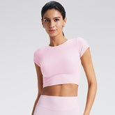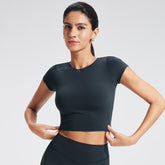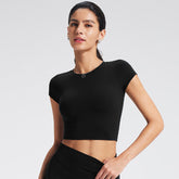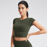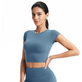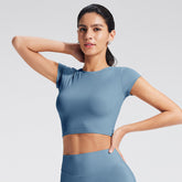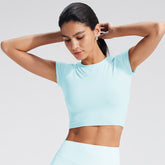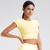 Customized Women's Fitted Regular-Shoulder Yoga Sports Top - Solid Color Crop Top for Fitness & Casual Wear (Short Sleeve)-B-XL38