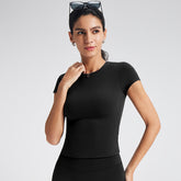 Customized Women's Nude - Feeling Short - Sleeve Round - Neck T - Shirt - Slim - Fit, Body - Contouring and Skinny for Yoga and Fitness - T-XL42