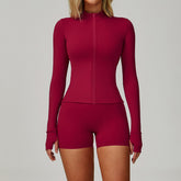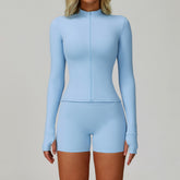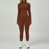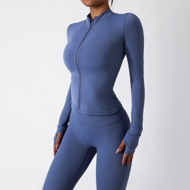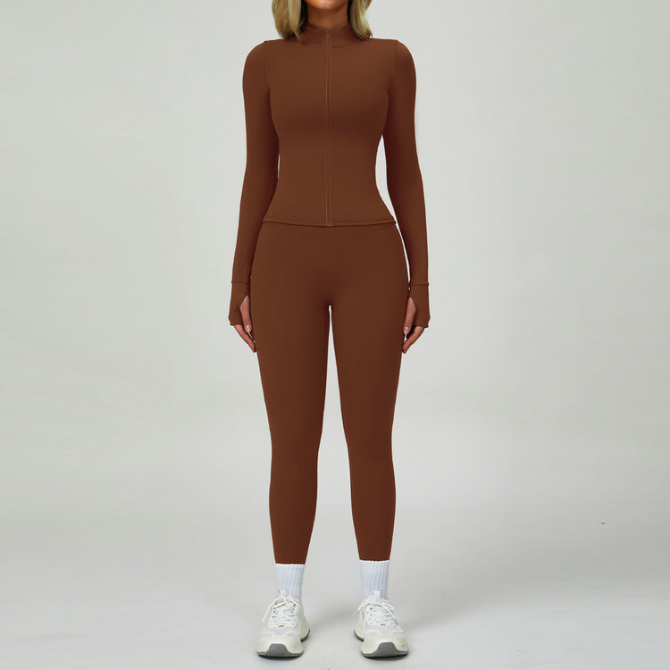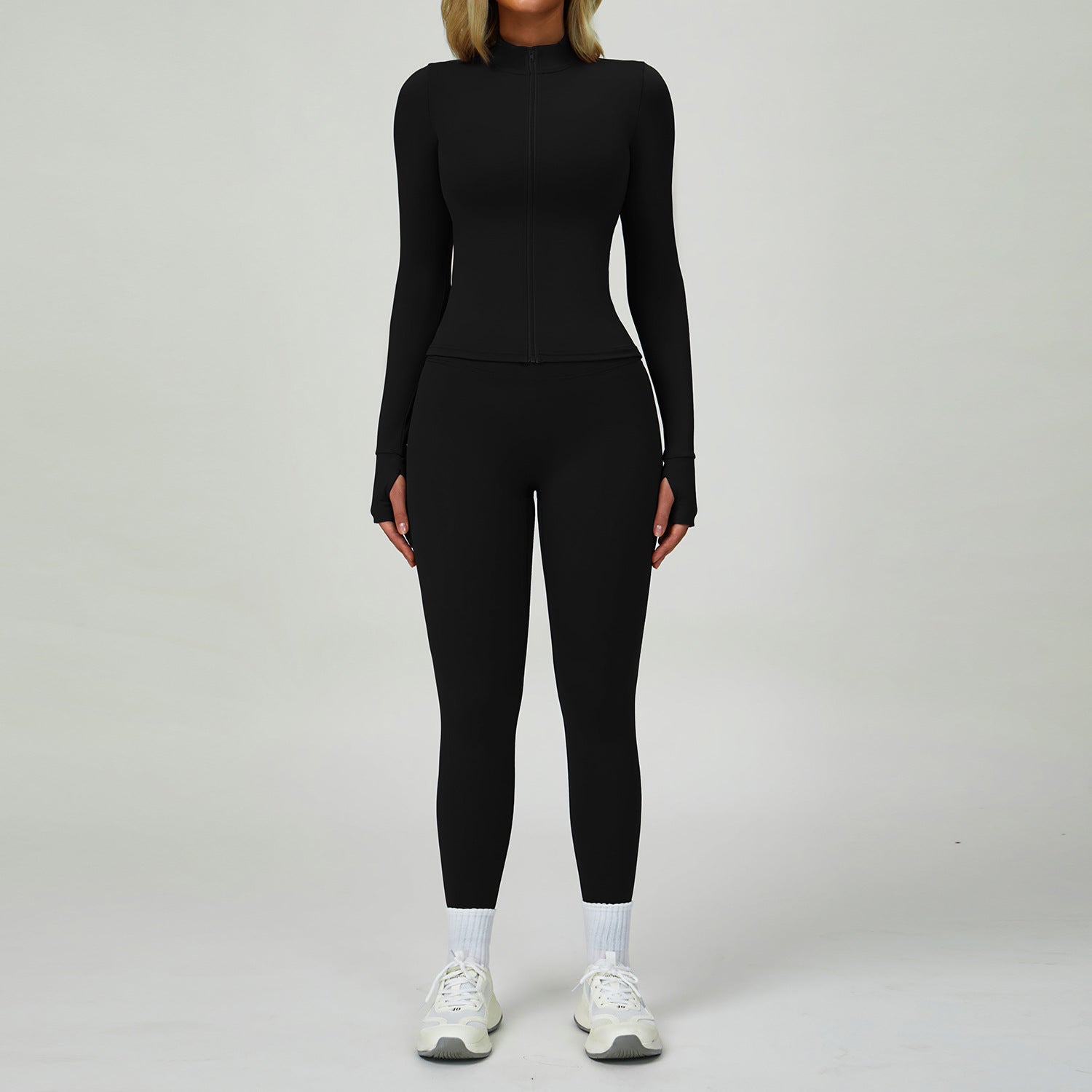 Customized Women's Seamless Yoga Set for Autumn & Winter - Zippered Long-Sleeve Slim-Fit Activewear Set for Running & Fitness