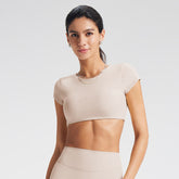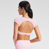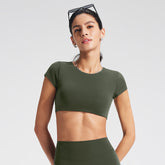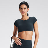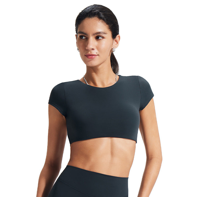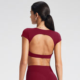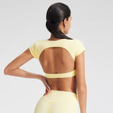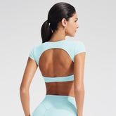 Customized Women's Slim-Fit Solid-Color Short-Sleeved T-Shirt for Fitness - Sexy Open-Back, Regular Shoulder, Cropped & Belly-Baring Design, Ideal for Yoga and Casual Wear - YT1341