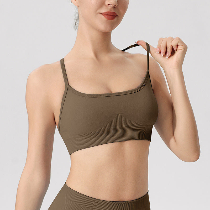 Fitness Seamless Nude Feel Bra Beauty Back Pilates Sports Underwear Spaghetti Strap Sling Women's Yoga Clothes Vest