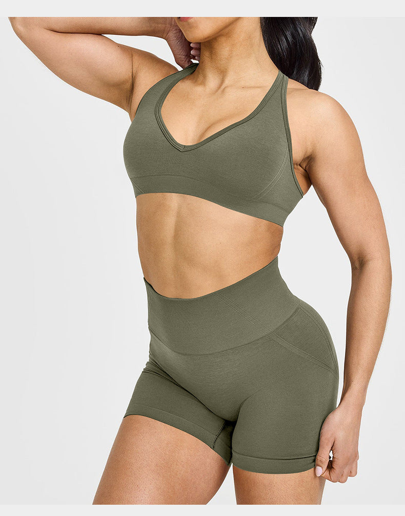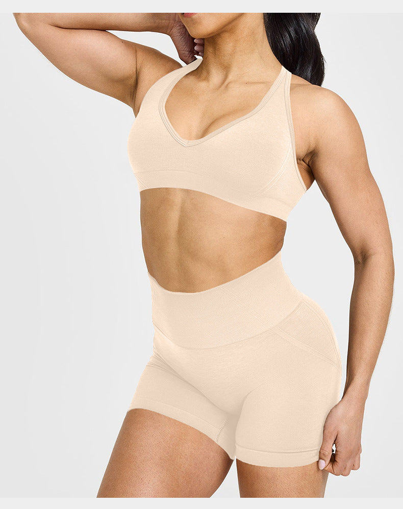 Cross-Border European and American Yoga Sports Shorts Yoga Pants Peach Hip Lift Fitness High Waist Seamless Cycling Shorts Three-Quarter Shorts